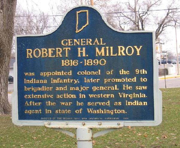 Robert Huston Milroy was admitted to the bar in 1849.He was a member of the 1851 convention when the Indiana constitution was drawn up.He later served as Judge of the Eight Circuit Court in Delphi, Indiana. In 1854 he resigned and moved to Rensselaer. When Judge Milroy heard the news of the firing on Fort Sumter, he immediately raised a company of volunteers. Milroy became the Captain; Edwin Hammond was appointed First Lieutenant, and Gideon Moody was made Second Lieutenant. All three men were from Rensselaer. The group became Company G of the Ninth Regiment. Captain Milroy became Colonel on April 25, 1961. The Ninth Regiment served in West Virginia under McClellan. Milroy was made Brigadier General and assigned to West Virginia. It was in the Cheat Mountain Country that he won the title of the "Gray Eagle of the Army".