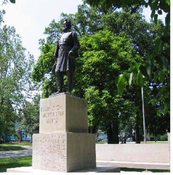 The Milroy Monument is located in Milroy Park. It is located near downtown Rensselaer. This monument is about 30 feet tall with General Robert H Milroy sculpture standing on the top. The sides of the monument has the names of all the Indiana volunteer soldiers who served under him during the Civil War. The monument was dedicated on July 4, 1910. The sculpture was created by Rensselaer native Mary Washburn.